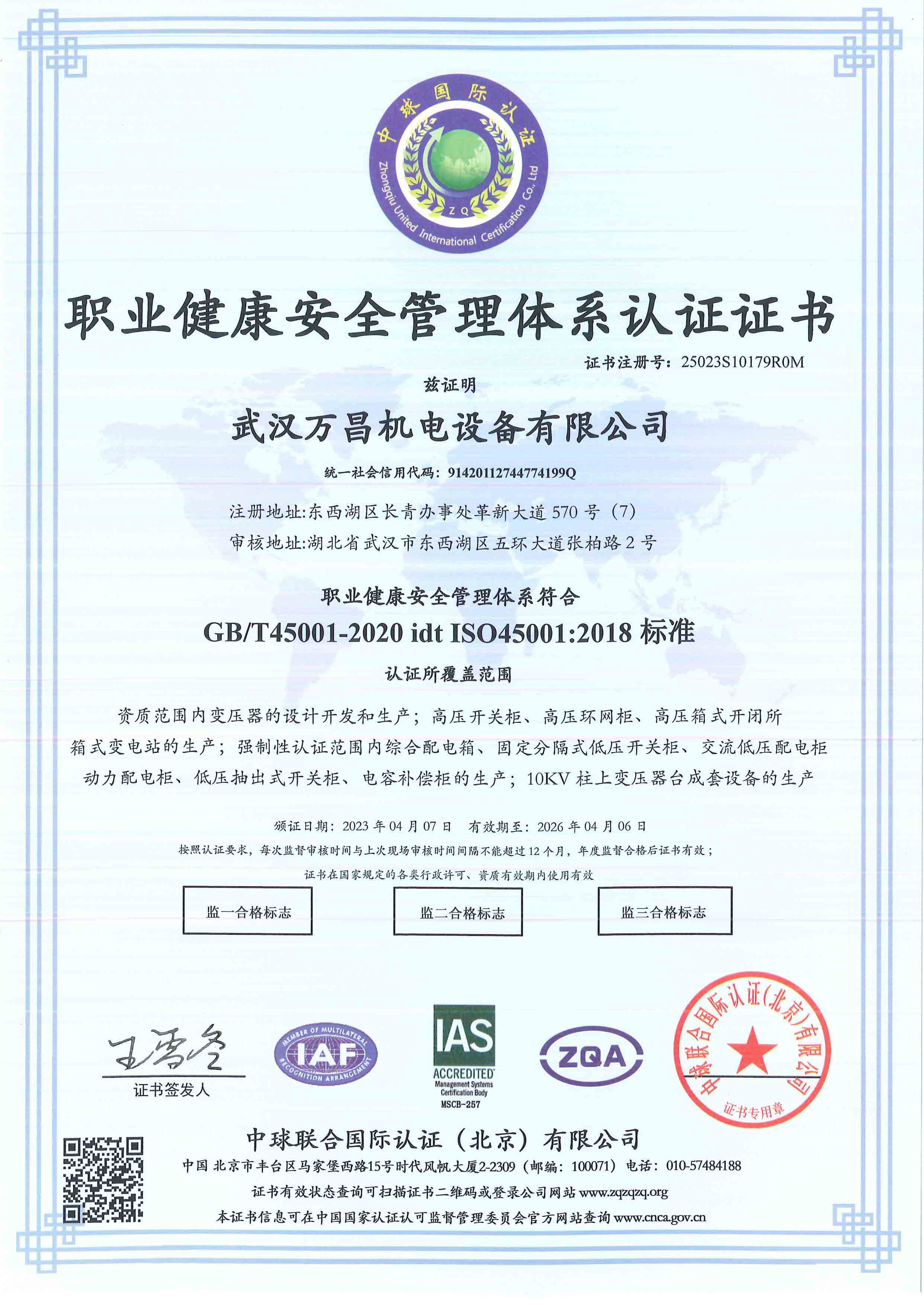 職業(yè)健康安全管理體系認(rèn)證證書(shū)