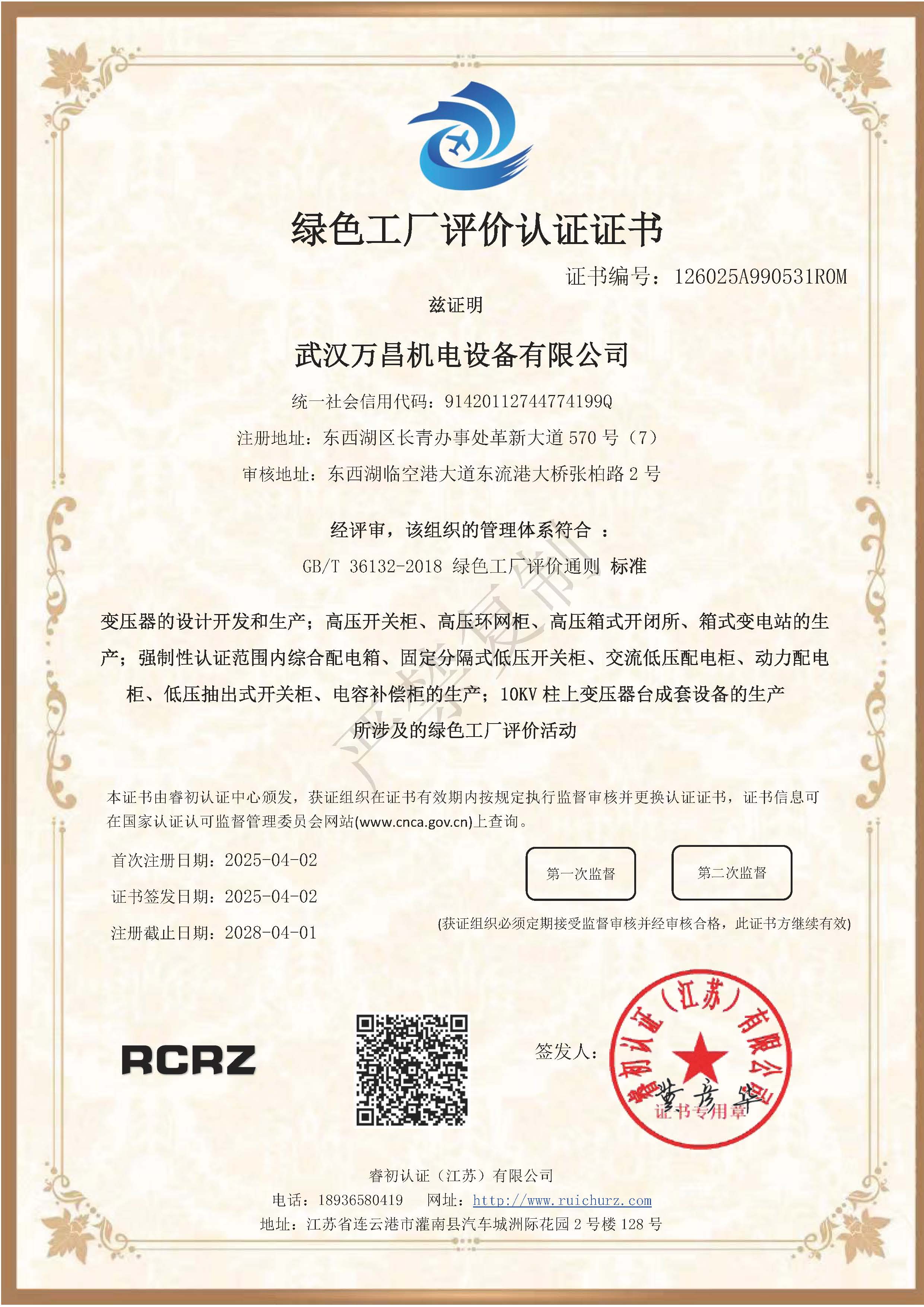 綠色工廠評(píng)價(jià)認(rèn)證證書(shū)